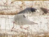 На озерце на острове Татышев мне встретились две чайки, насколько я понимаю, разных видов. Вроде восточно-сибирская и барабинская (прошу специалистов меня поправить). Они не спеша прогуливались по льдине. Чайка с более тёмной мантией сделала облёт над водой и вернулась на лёд. Она нашла что-то съестное и стала долбить лёд, к ней присоединилась чайка со светлой мантией. Затем светлая чайка стала выпрашивать еду у тёмной, и та её угостила. Тёмная сделала ещё круг над озерком и, не найдя ничего вкусного, улетела на Енисей. Вскоре за ней последовала [...... read more ]
