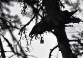 В прошлом феврале я заметила, как вОроны строят гнездо из веток на высокой скале в нише под корнями тщедушного молодого кедра, стоявшего на самом краю скалы. Весной, в середине апреля я пошла на ту гору за первой колбой и решила заглянуть в гнездо сверху, благо, что фотокамера всегда с собой. Я хотела сделать парочку кадров, ухватившись за ствол и корни кедра, но гнездо оказалось так искусно спрятано, что невозможно было его даже увидеть сверху. Ворон был сильно расстроен моими действиями: он перелетал с дерева на дерево, садился на пихту, нервно [...... read more ]