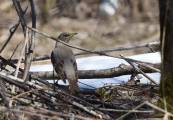 Сегодня, наконец, едва ли не первый очень теплый день в наших краях. Решила прокатиться вдоль р. Томь и заглянуть в доступные прибрежные лесочки. В лесу еще много снега, мокро. На проталинах из-под черной прошлогодней подстилки повылазили маленькие ветреницы, еще розовые и очень сочные после зимней спячки, и сразу раскрылись под солнцем, сияя в мрачном лесу белыми звездами. Сырая почва - благодать для дроздов: их очень много пасется на земле, добывая червей. В основном рябинники, чуть меньше-темнозобые. Очень хотелось встретить краснозобого, но, [...... read more ]