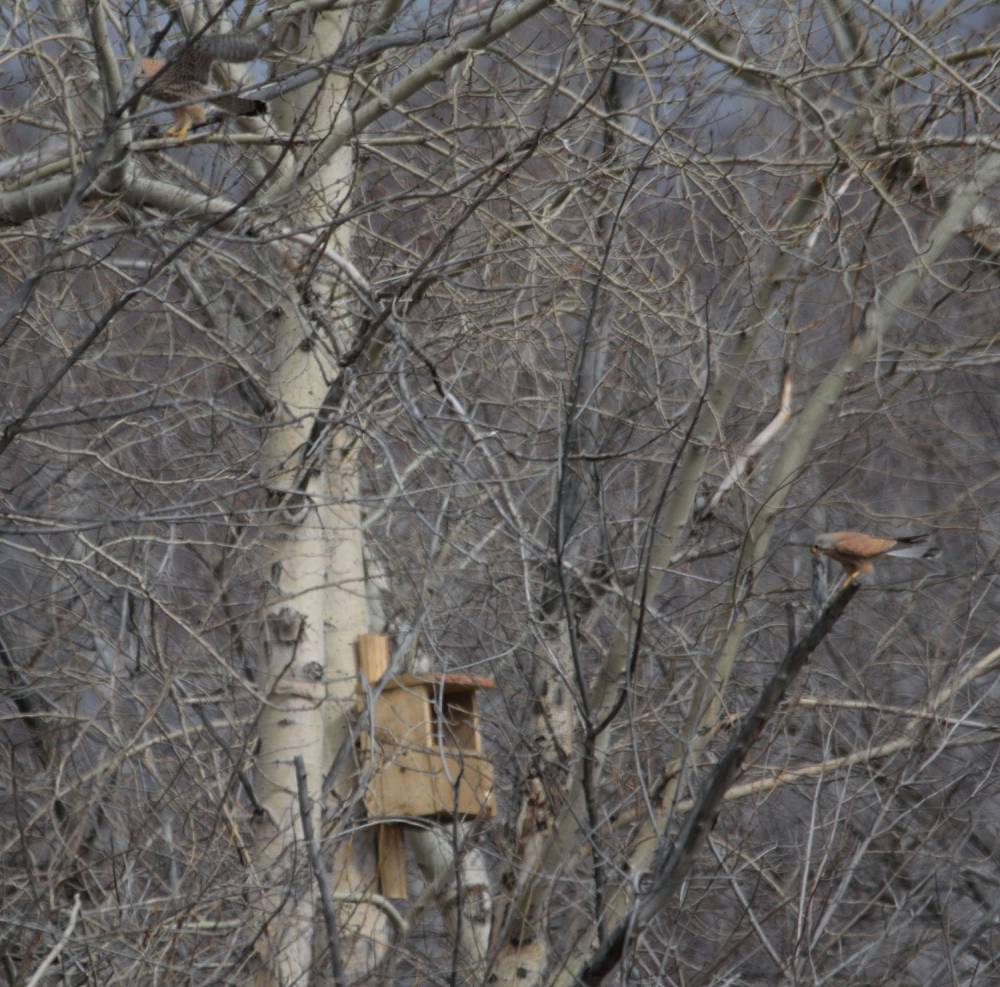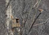 Сегодня проехали по Ордынской трассе, где в прошлое воскресенье нами было вывешено 23 гнездовых ящика и увидели первых новоселов. Похоже, случившийся на неделе снегопад с сильным северо-западным ветром продемонстрировал соколам преимущество капитального жилья перед сорочьими гнездами. Самка сидела на входе, а самец принес ей большую и толстую полевку. Как писано в 50-х у К.Н.Благосклонова одна серая полевка уничтожает за лето 1 кг зерна . Птиц беспокоить не стали, снимали прямо с обочины. Похоже, пустельги плотно сели на кладки - неделю назад при [...... read more ]