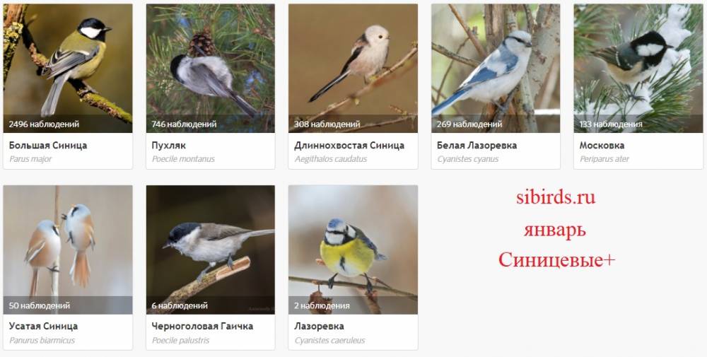 Итак, пока подводить январские итоги конкурса на лучшие снимки синичек (выбор участников сайта).1. Сероголовая гаичка, Константин Кислой - https://sibirds.ru/v2photo.php?s=088700279&l=ru&n=1&si=sib2. Черноголовая гаичка, Сергей Чумаков - https://sibirds.ru/v2photo.php?s=050801634&l=ru&n=1&si=sib3. Белая лазоревка, Дмитрий Дубиковский - https://sibirds.ru/v2photo.php?s=051505081&l=ru&n=1&si=sib4. Большая синица, Сергей Чумаков - https://sibirds.ru/v2photo.php?s=050801635&l=ru&n=1&si=sib5. Большая синица, Екатерина Шичкова - https://sibirds.ru/v2photo.php?s=064200354&l=ru&n=1&si=sib6. Пухляк, Константин Самодуров - https://sibirds.ru/v2photo.php?s=055302864&l=ru&n=1&si=sibПобедители - молодцы, а я напомню, что [...... read more ]