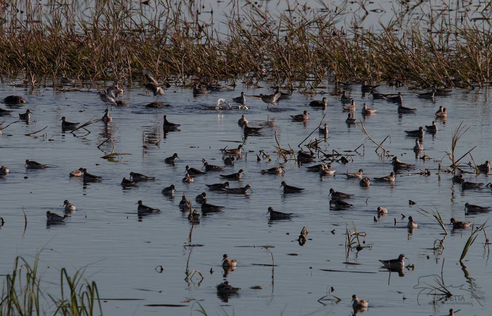 Плавунчики - очень своеобразная группа куликов... Все у них не так... Плавают, как утки и другие водоплавающие, а уж если покопаться в брачные отношения... Природа поменяла у них роли самцов и самок... И что получается: самки более яркие, контрастные, самцы с более коричневатым тусклым оперением. Самки защищают, в том числе и при помощи физической силы своих самцов от других самок. Ну, и как только самки откладывают яйца, могут найти нового самца... Или улететь на южные курорты, оставив насиживающих самцов наедине с кладкой и доверив будущее потомство...Сегодня [...... read more ]
