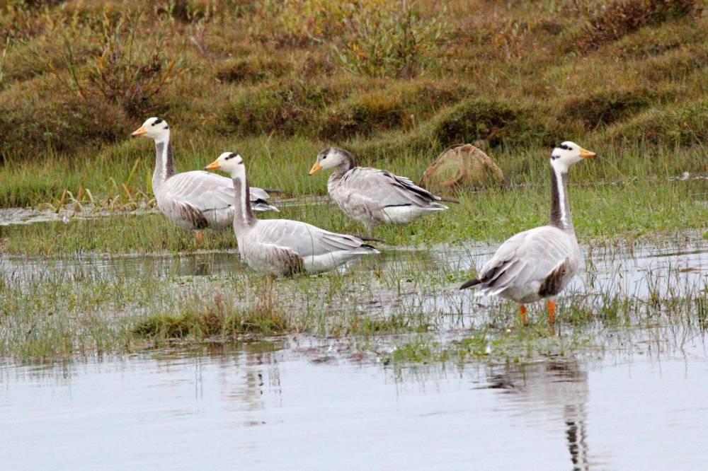 Съездил в конце августа на несколько дней (27-30 августа) в Кош-Агач. Просто добрался на автобусе, а там побродил по окрестностям. В основном, по озерам. Горных гусей встречал несколько раз. И небольшими семьями, и стаей птиц в 30. Много серых цапель. А больших белых видел только пару раз. Также пару раз видел черного аиста. Искал колпицу, но не встретил. Много уток, лысух, поганок. Видел пару семей красноносых нырков.У куликов пролет, наверно, заканчивался. Если 27-го августа они были на многих озерах, хоть и в небольших количествах, то 30-го уже было практически [...... read more ]