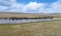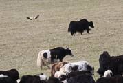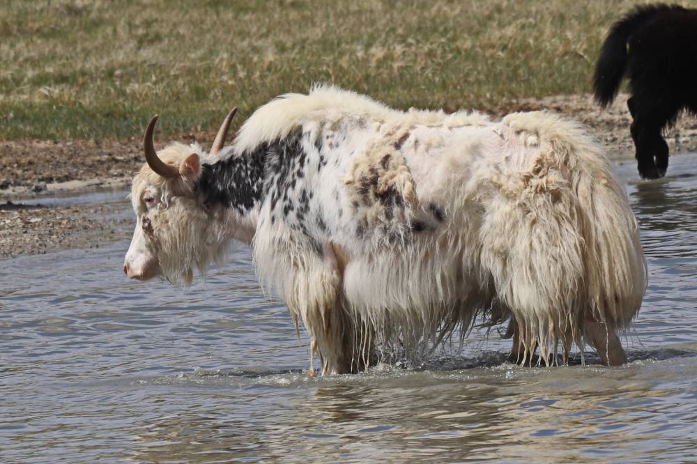 Республика Алтай, Сайлюгемский хребет. Прогуливаясь по окрестностям горы Черная. на высоте около 2600 м я вышел к озеру. Небольшому, метров 150 в длину. И мелкому. В это же время к озеру на водопой пришло стадо сарлыков, этих алтайских яков. Они забрели в озеро и практически заняли его полностью. И тут оказалось, что в озере живет семья огарей, мама с птенцами, совсем малыми. Я стал невольным свидетелем того, как огарям пришлось с яками соседствовать.. [...... read more ]