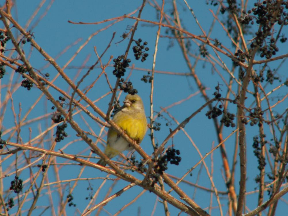 Этой зимой впервые в Новосибирской области остались на зимовку зеленушки. Если не считать встречу 7 особей зеленушек 22 февраля 2011 г. на территории станции Новосибирск-Западный А.П.Яновским (Жуков, 2012). Зеленушки находятся на территории посёлка Кольцово с 31 декабря 2015 г. Кормятся плодами черёмухи Маака. Каждый день встречается от 1 до 12 зеленушек, последняя дата их встречи - 19 января, видимо, не последняя. [...... read more ]