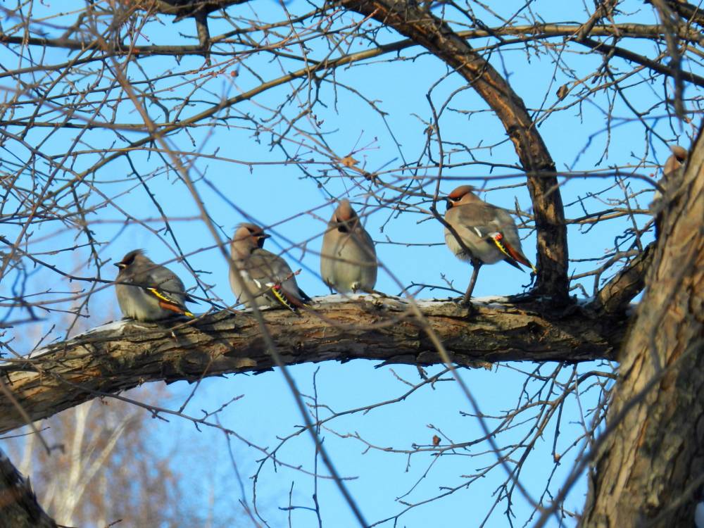 В парке очень много Свиристелей. Небольшими стайками встречаются Снегири. Возле кормушек много в этом году Поползней и Пухляков. Больших Синиц у кормушек пока меньше. Стайку Ополовничков(20) встречаю постоянно, с ними вместе видела 2-х Московок и малого Пестрого.Всего встретила:1) Свиристели-большая стая (100)2) Снегири 183) Ополовнички- 204) Московка -25)Большая синица - много.6)Пухляк - 87) Поползень-108) Полевой воробей -29)Сорока- 4 [...... read more ]
