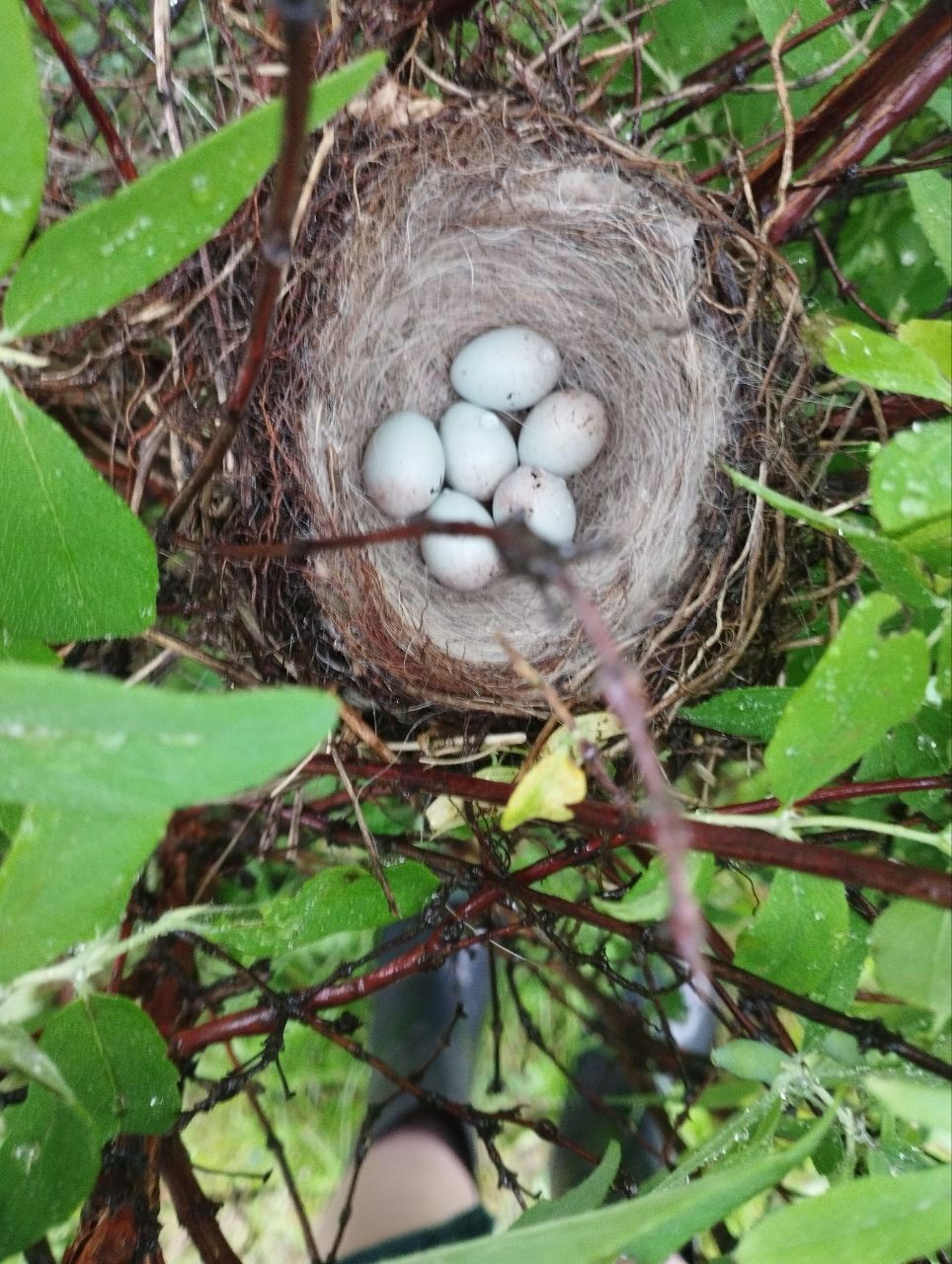 Юннаты интересуются, что за птица свила гнездо на дачном участке в окрестностях Красноярска. Предполагаю зеленушку или коноплянку. Гнездо в кустарнике, на высоте чуть больше метра от земли. Возможно определить? [...... read more ]