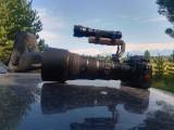 после появления достаточно тяжелого объектива оказалось, что долго носить его на ремне не совсем удобно. т.к. объектив сразу шел со штативной лапкой, которая может вращаться по кругу-была придумана конструкция. у видеографов к клетке камеры всегда прикручивается удобная рукоятка, на которой много резьбовых отверстий и несколько точек для крепления холодного башмака. в моем случае на авито нашлась такая ручка, которую закрепил через штативный винт к лапке. ручка при переноске всегда развернута наверх, при уборке в рюкзак ее можно повернуть под [...... read more ]
